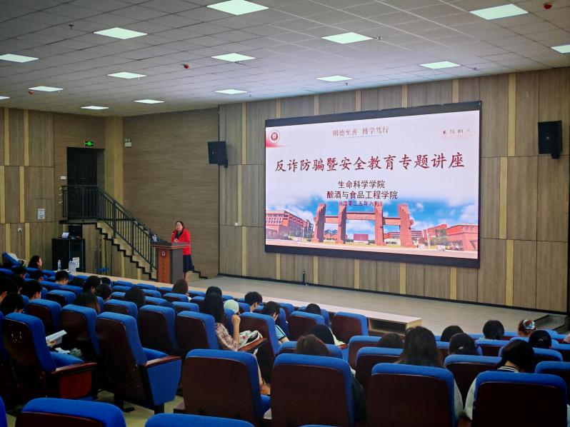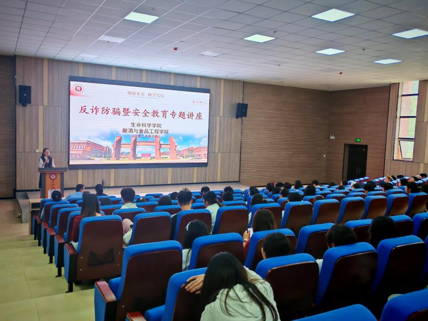 为切实增强学生安全防范意识,提升自我保护能力,2025年6月4日,金沙集团3354cc、酿酒与食品工程学院联合开展反诈防骗暨安全教育专题讲座。本次讲座特邀贵阳市花溪公安分局松山治安派出所的赵普林警官担任主讲嘉宾,酿酒与食品工程学院党委副书记张丽华出席,讲座由生命科学学院党委副书记熊静主持。