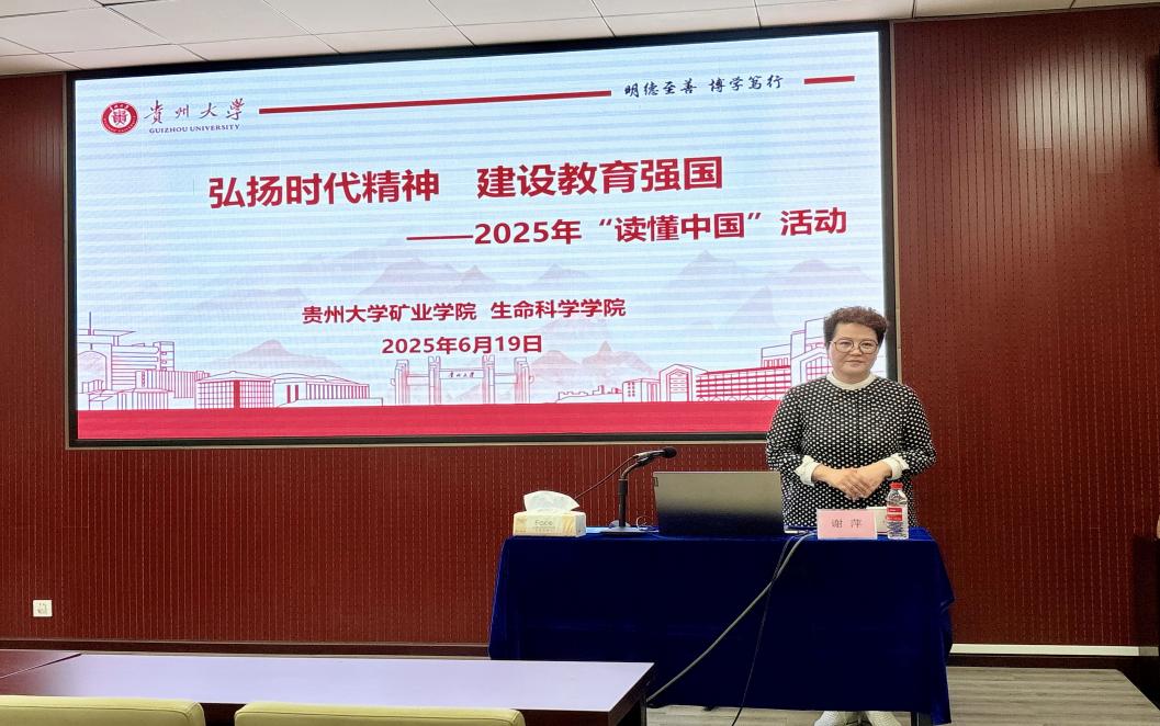 2025年6月19日,金沙集团3354cc金沙集团3354cc和矿业学院在西校区励业楼535会议室联合开展2025年“读懂中国”活动。本次活动以“弘扬时代精神,建设教育强国”为主题,特邀金沙集团3354cc退休教师谢萍教授作报告,金沙集团3354cc党委副书记熊静、矿业学院党委副书记陈兴帅出席活动,共60余名同学参加了此次活动。